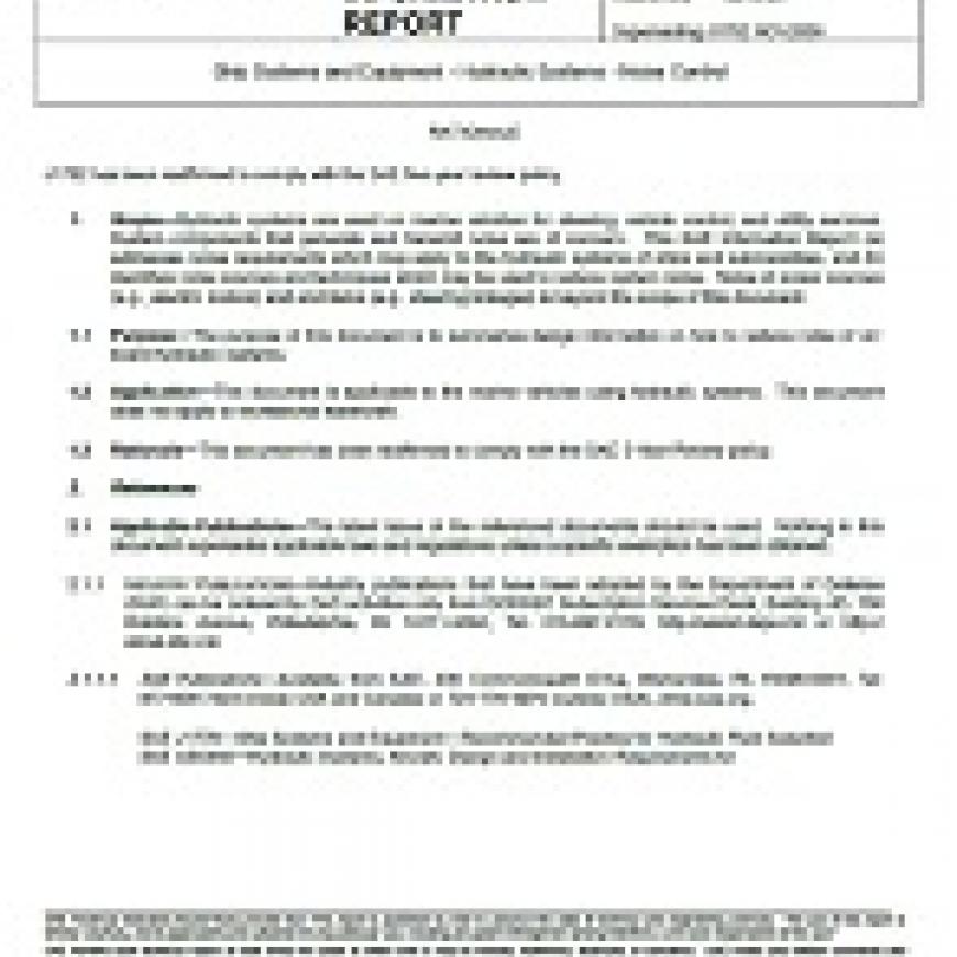Hydraulic systems are used on marine vehicles for steering, vehicle control, and utility services. System components that generate and transmit noise are of concern. This SAE Information Report (a) addresses noise requirements which may apply to the hydraulic systems of ships and submersibles, and (b) identifies noise sources and techniques which may be used to reduce system noise. Noise of power sources (e.g., electric motors) and end items (e.g., steering linkages) is beyond the scope of this document.