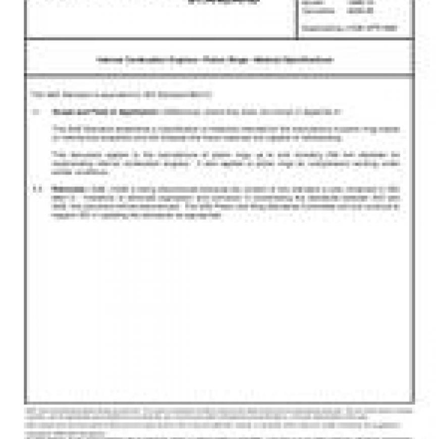 This SAE Standard establishes a classification of materials intended for the manufacture of piston rings based on mechanical properties and the stresses that these materials are capable of withstanding.This document applies to the manufacture of piston rings up to and including 200 mm diameter for reciprocating internal combustion engines. It also applies to piston rings for compressors working under similar conditions.