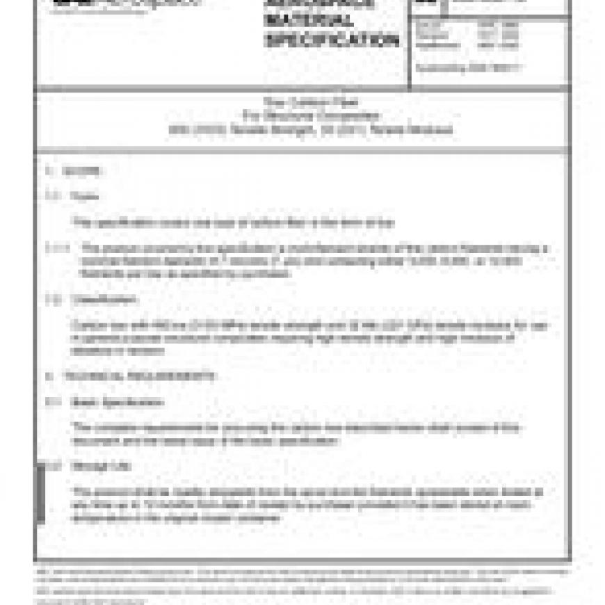 This specification covers one type of carbon fiber in the form of tow. The product covered by this specification is multi-filament strands of fine carbon filaments having a nominal filament diameter of 7 microns (7 um) and containing either 3,000, 6,000, or 12,000 filaments per tow as specified by purchaser. Carbon tow with 450 ksi (3103 MPa) tensile strength and 32 Msi (221 GPa) tensile modulus for use in general purpose structural composites requiring high tensile strength and high modulus of elasticity in tension.
