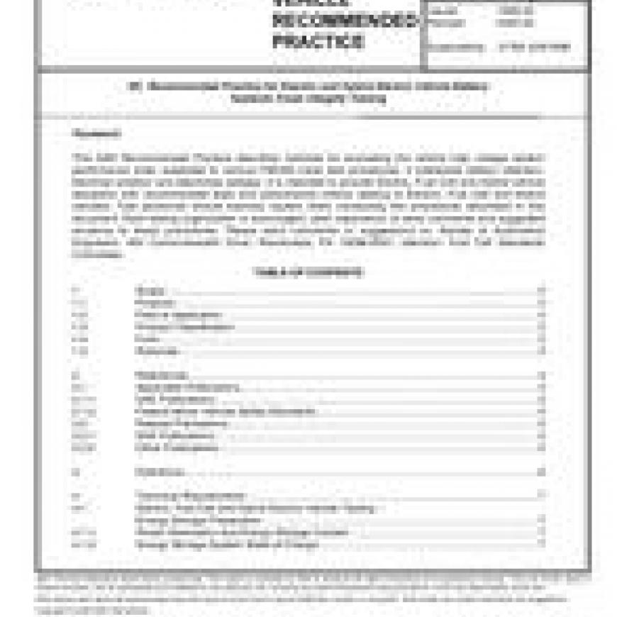 Electric, Fuel Cell and Hybrid vehicles may contain many types of high voltage systems. Adequate barriers between occupants and the high voltage systems are necessary to provide protection from potentially harmful electric current and materials within the high voltage system that can cause injury to occupants of the vehicle during a crash. This SAE Recommended Practice is applicable to all Electric, Fuel Cell and Hybrid vehicle designs that are comprised of at least one voltage bus with a nominal voltage greater than or equal to 60 Volts DC or 30 VAC. This Recommended Practice addresses electrical isolation integrity, electrolyte spillage, and retention of the battery system.