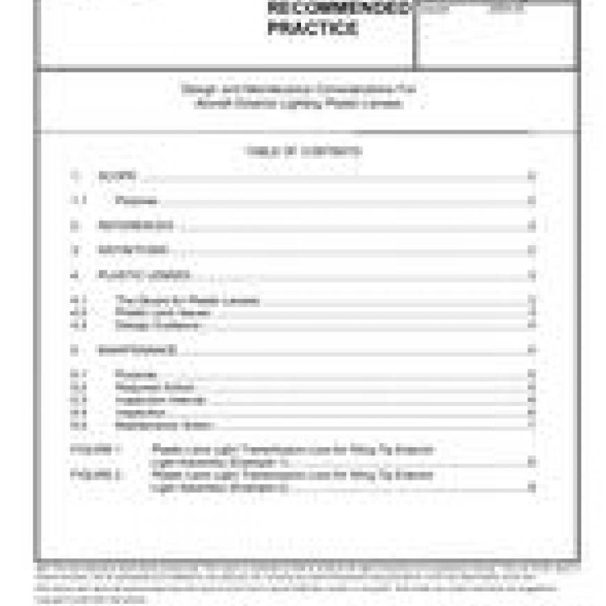 The information in this document is intented to apply to commercial jet transport category airplanes that incorporate plastic (polycarbonate or acrylic) lenses on exterior light assemblies, or are being considered for such an application. Exterior lighting applications include position light assemblies, anticollision light asemblies, and landing light assemblies. However, much of the material provided herein is general in nature and is directly applicable to many aircraft categories including, but not limited to, helicopters, general aviation aircraft, and military aircraft.