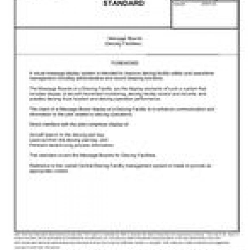 This SAE Aerospace Standard (AS) establishes the minimum standard requirements for Message Boards (MBs) at Deicing Facilities. This standard also defines the minimum content and appearance of the display, functional capabilities, design requirements, and inspection and testing requirements.The Design and Operation of Aircraft Deicing Facilities are covered by SAE ARP 4902.Standards for the deicing facility management system are outside the scope of this document.