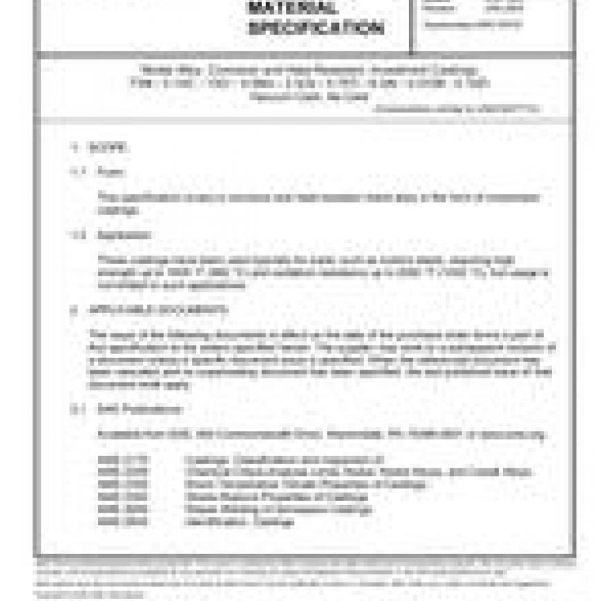 This specification covers a corrosion and heat resistant nickel alloy in the form of investment castings.These castings have been used typically for parts, such as turbine blades requiring high strength up to 1800 degrees F (982 degrees C) and oxidation resistance up to 2000 degrees F (1093 degrees C), but usage is not limited to such applications.