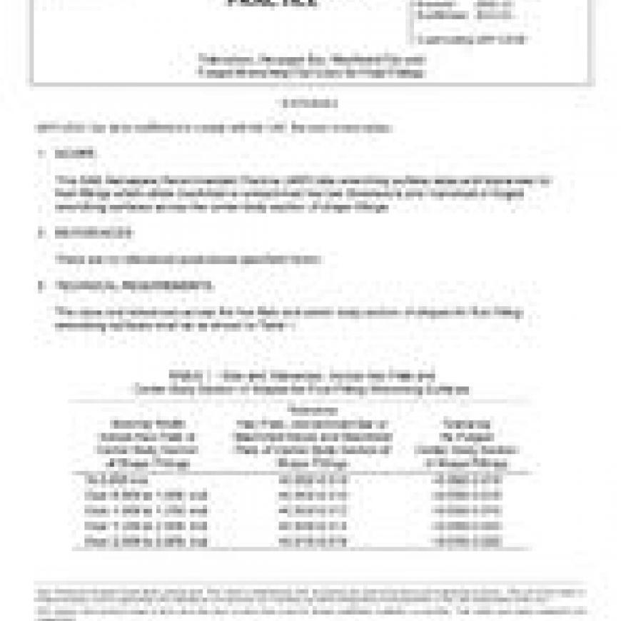 This SAE Aerospace Recommended Practice (ARP) lists wrenching surface sizes and tolerances for fluid fittings which utilize machined or unmachined hex bar dimensions and machined or forged wrenching surfaces across the center body section of shape fittings.