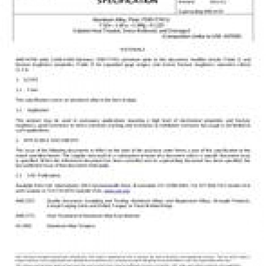 This specification covers an aluminum alloy in the form of plate.This product may be used in aerospace applications requiring a high level of mechanical properties and fracture toughness, good resistance to stress-corrosion cracking and resistance to exfoliation corrosion, but usage is not limited to such applications.