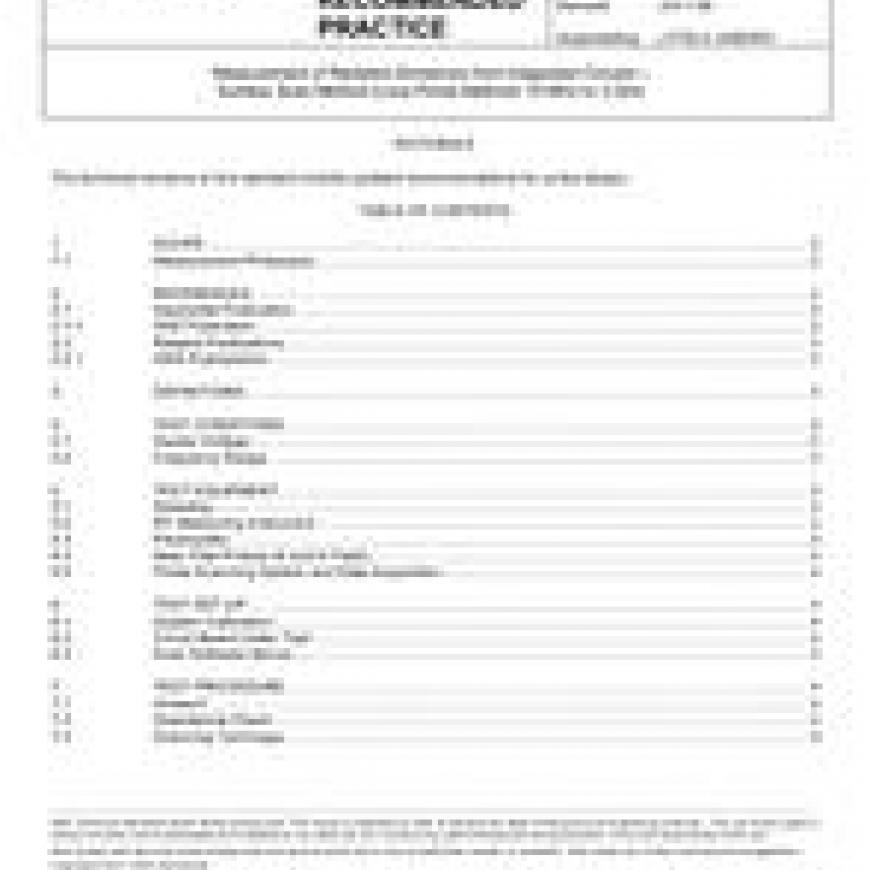 This SAE Recommended Practice defines a method for evaluating the near field electric or magnetic component of the electromagnetic field at the surface of an integrated circuit (IC). This technique is capable of providing a detailed pattern of the RF sources internal to the IC. The resolution of the pattern is determined by the characteristics of the probes used and the precision of the mechanical probe positioner. The method is usable over the 10 MHz to 3 GHz frequency range with existing probe technology. The probe is mechanically scanned according to a programmed pattern in a plane parallel or perpendicular to the IC surface and the data is computer processed to provide a color-enhanced representation of field strength at the scan frequency. This procedure is applicable to measurements from an IC mounted on any circuit board that is accessible to the scan probe. For comparisons, the standardized test board shall be used. This diagnostic procedure is intended for IC architectural analysis including functional floor plan and power distribution.