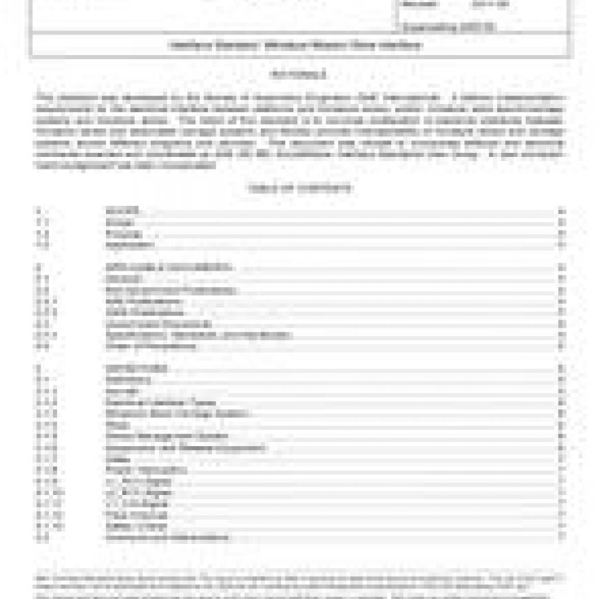 This standard defines implementation requirements for the electrical interface between: a. aircraft carried miniature store carriage systems and miniature stores; b. aircraft parent carriage and miniature stores; c. surface based launch systems and miniature storesThe interface provides a common interfacing capability for the initialization and employment of smart miniature munitions and other miniature stores from the host systems. Physical, electrical, and logical (functional) aspects of the interface are addressed.The purpose of this standard is to minimize proliferation of electrical interfaces between platforms, miniature stores and associated carriage systems and thereby promote interoperability of miniature stores and carriage systems across different programs and services.This standard applies to all platforms, miniature stores and associated carriage systems that electrically interface with each other. The carriage systems include captive and releasable (canister type) aircraft mounted carriage devices, platforms such as unmanned combat air vehicles (parent carriage), dedicated carriage areas on aircraft, and surface based launch systems. For simplicity within this document, all carrying devices are generically referred to as the miniature store carriage system (or simply carriage system) from an interface perspective. Additionally, the term store as used in this document refers to a miniature store unless otherwise indicated.