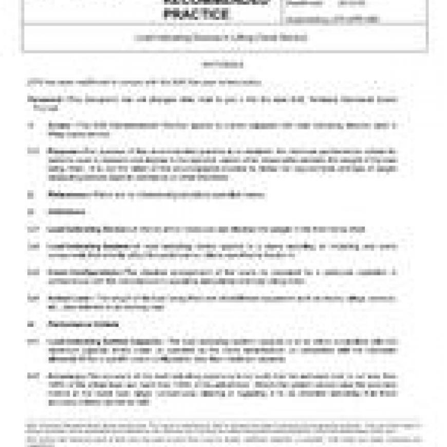 The purpose of this recommended practice is to establish the minimum performance criteria for systems used to measure and display to the operator, and/or other responsible persons, the weight of the load being lifted. It is not the intent of this recommended practice to define the requirements and use of weight measuring devices used in commerce or other industries. This SAE Recommended Practice applies to cranes equipped with load indicating devices used in lifting crane service.