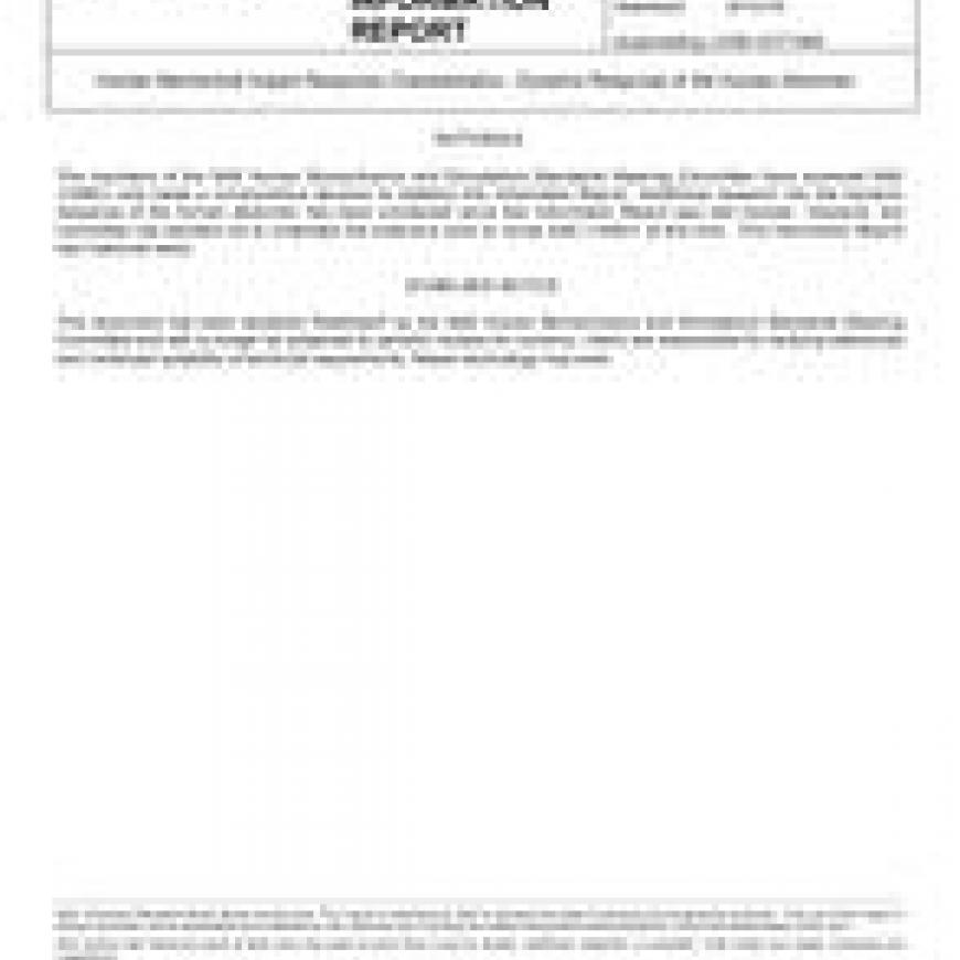 This series of reports provides response characteristics of the head, face, neck, shoulder, thorax, lumbar spine, abdomen, pelvis, and lower extremities. In each report, the descriptions of human impact response are based on data judged by the subcommittee to provide the most appropriate information for the development of human surrogates.