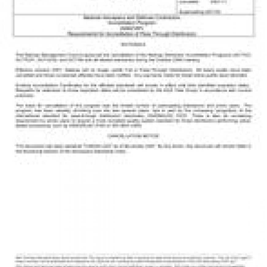 This document has been declared "CANCELLED" as of November 2007. By this action, this document will remain listed in the Numercial Section of the Aerospace Standards Index.This aerospace standard outlines the minimum requirements for the quality assurance program of a distributor of new aircraft or aerospace parts and material. It is designed to aid in the surveillance and accreditation of a distributor who procures new parts and materials and resells these products to customers or other distributors in the aviation or aerospace industry, i.e., a PASS THROUGH distributor. This standard may be used to determine the adequacy and implementation of the distributor's quality assurance program