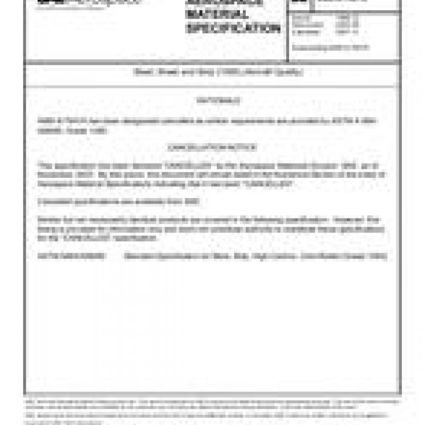 This specification has been declared CANCELLED by the Aerospace Materials Division, SAE, as of November, 2007. By this action, this document will remain listed in the Numerical Section of the Index of Aerospace Material Specifications indicating that it has been CANCELLED. Similar but not necessarily identical products are covered in the following specification. However, this listing is provided for information only and does not constitute authority to substitute these specifications for the CANCELLED specification.ASTM A684/A684M Standard Specification for Steel, Strip, High-Carbon, Cold-Rolled (Grade 1095)This specification covers carbon steel (1095) sheet and strip of aircraft quality.