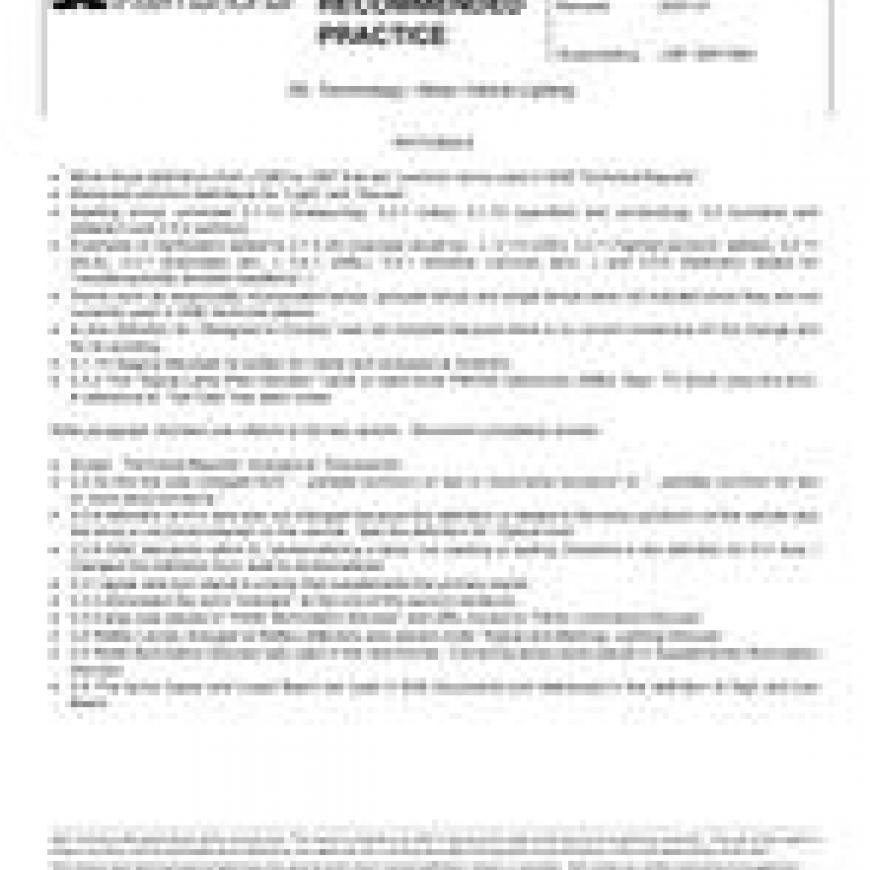 This SAE Recommended Practice provides definitions of common terms used in SAE Technical Reports pertaining to motor vehicle lighting. It covers not only basic lighting terms but also terms which identify major segments of technical reports.