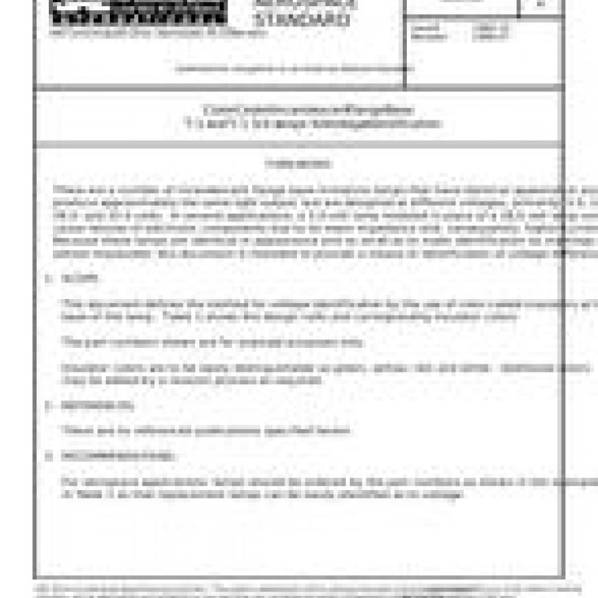 This document defines the method for voltage identification by use of color coded insulators at the base of the lamp. Table 1 shows lamp part numbers and corresponding insulator colors.The part numbers shown are for example purpose only.Insulator colors are to be easily distinguishable as green, yellow, red, and white. Additional colors may be added by a revision process as required.