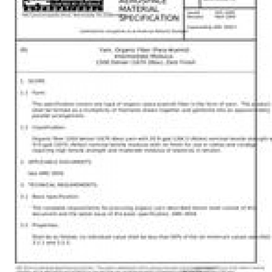 This specification covers one type of organic (para-aramid) fiber in the form of yarn. The product shall be formed as a multiplicity of filaments drawn together and gathered into an approximately parallel arrangement.